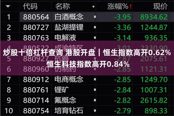 【炒股配资】炒股十倍杠杆查询 港股开盘|恒生指数高开0.62% 恒生科技指数高开0.84%
