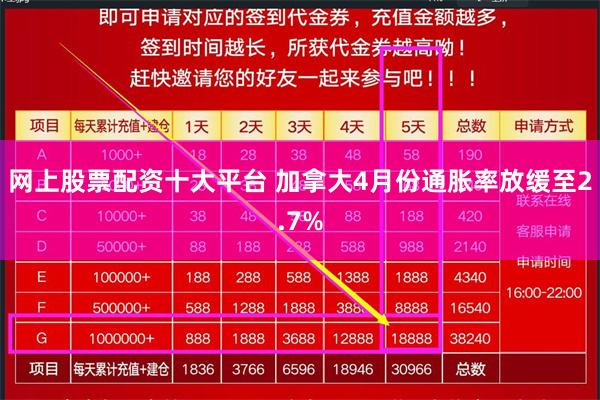 【配资炒股真实平台】网上股票配资十大平台 加拿大4月份通胀率放缓至2.7%