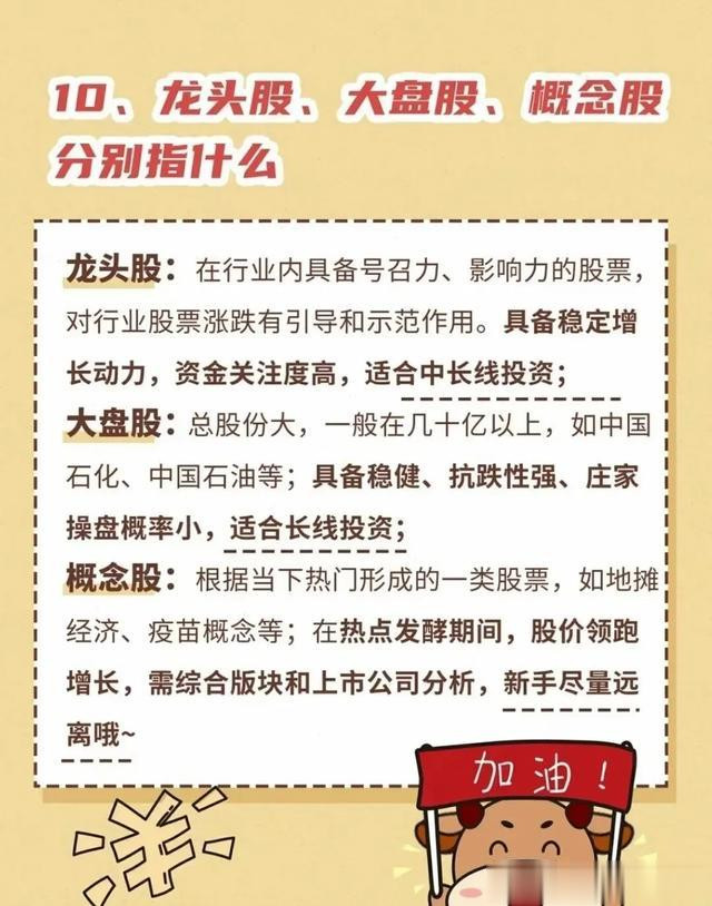 龙头股是在其所在行业具有影响力的公司,它的涨跌对同行业板块的涨跌起引导示范作用,对同板块其他股票有影响力和号召力。概念股指某种具有特定内涵的股票,通常指代一种选股或炒作的题材,例如BC电池概念股、工业母机概念股、智谱AI概念股、低空经济概念股等。