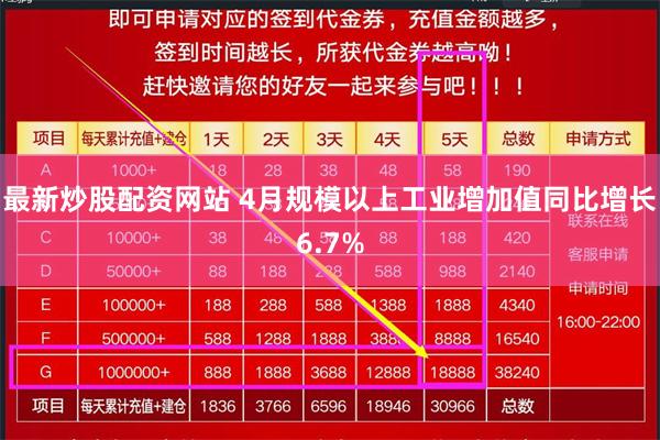 【永华证券实盘公司】最新炒股配资网站 4月规模以上工业增加值同比增长6.7%